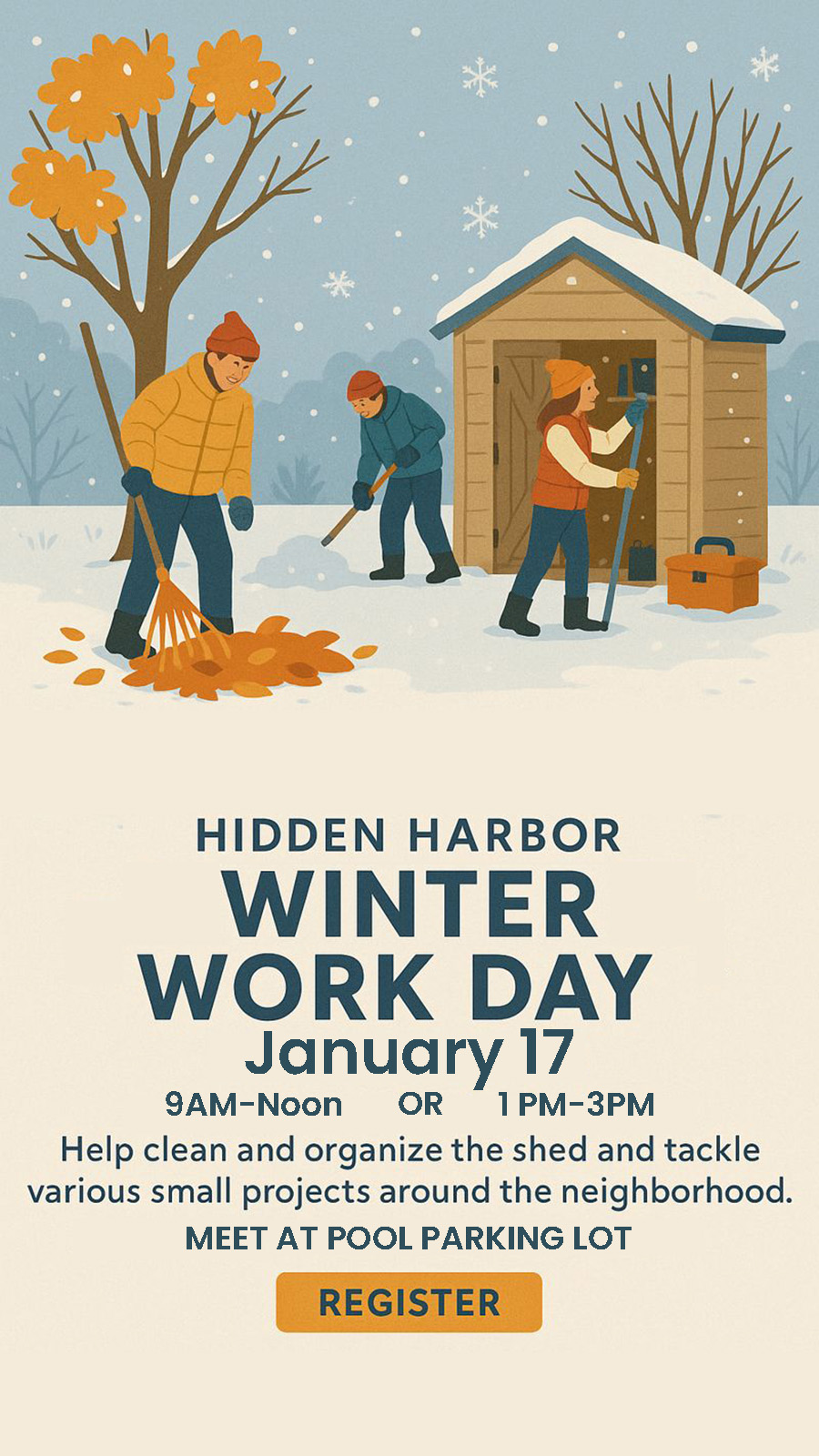January 17 @ 1:00 pm - 4:00 pm Neighborhood Cleanup Part 2 Hidden Harbor Pool 6544 Lake Meadows Dr, Hixson Let’s Spruce Up the Neighborhood! It’s time for a Neighborhood Cleanup & Work Day, and we’re looking for volunteers to Free